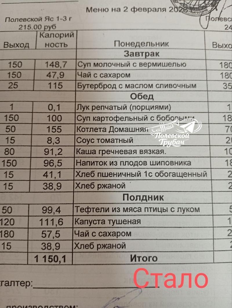 С 1 февраля 2026 года в детских дошкольных учреждениях внедрена новая система питания, предусматривающая четыре приема пищи: завтрак, второй завтрак, обед, усиленный полдник. Этот вопрос обсуждался на заседании Городского родительского комитета Полевского. В мероприятии приняли участие руководители всех детских садов, представители родительских комитетов, а также представитель комбината общественного питания. Усиленный полдник теперь будет совмещать в себе и полдник, и ужин сразу.