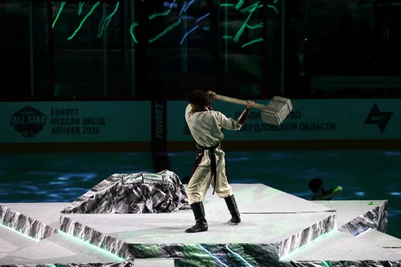Перед началом матча зрителей ждала масштабная и яркая церемония открытия, основанная на уральской символике. Главным образом шоу стали Урал и его богатства — минералы и камень. Хоккей был представлен как искусство шлифовки таланта, а ключевым персонажем церемонии стал Данила-мастер из сказа Павла Бажова «Каменный цветок». Его труд у каменной глыбы символизировал путь хоккеиста к совершенству, а кульминацией стало появление Кубка Вызова из расколовшегося камня. Музыкальную часть церемонии украсило выступление группы «Интонация», известной по хитам сериала «Молодежка».