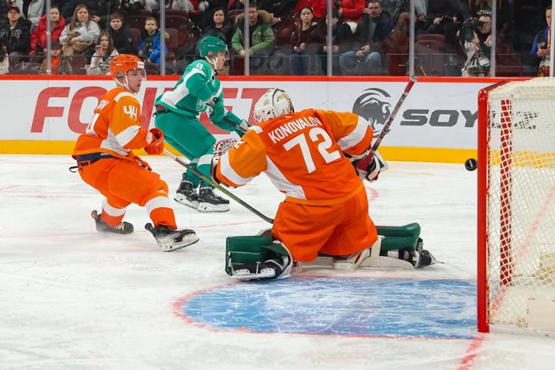 С первых минут инициативу захватила сборная Западной конференции. Команды начали на высоких скоростях, и уже одна из первых быстрых атак завершилась голом: форвард «Красной Армии» Алексей Донцов обогнал двух защитников и точно бросил в дальний верхний угол.