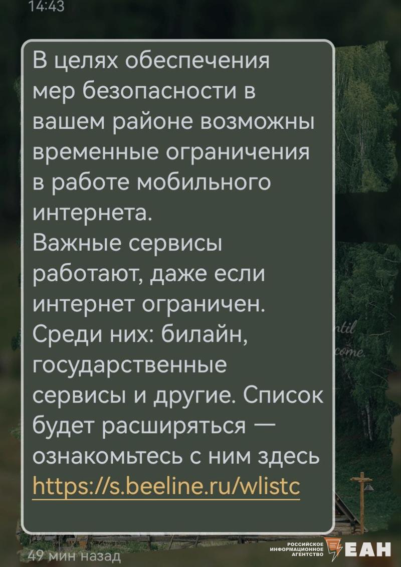 «Важные сервисы работают, даже если интернет ограничен. Среди них: «Билайн», государственные сервисы и другие. Список будет расширяться», — говорится в уведомлении.