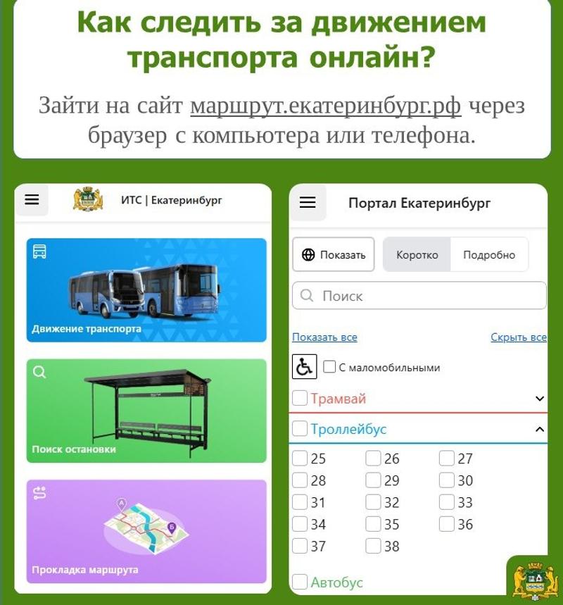 Для пассажиров общественного транспорта Екатеринбурга работает единый сервис для отслеживания движения автобусов, троллейбусов и трамваев. Об этом сообщается в telegram-канале городского департамента транспорта.