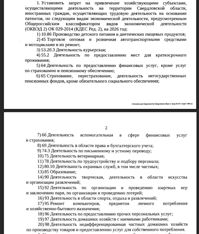 Список отраслей, где запретили работать мигрантам по патентам
