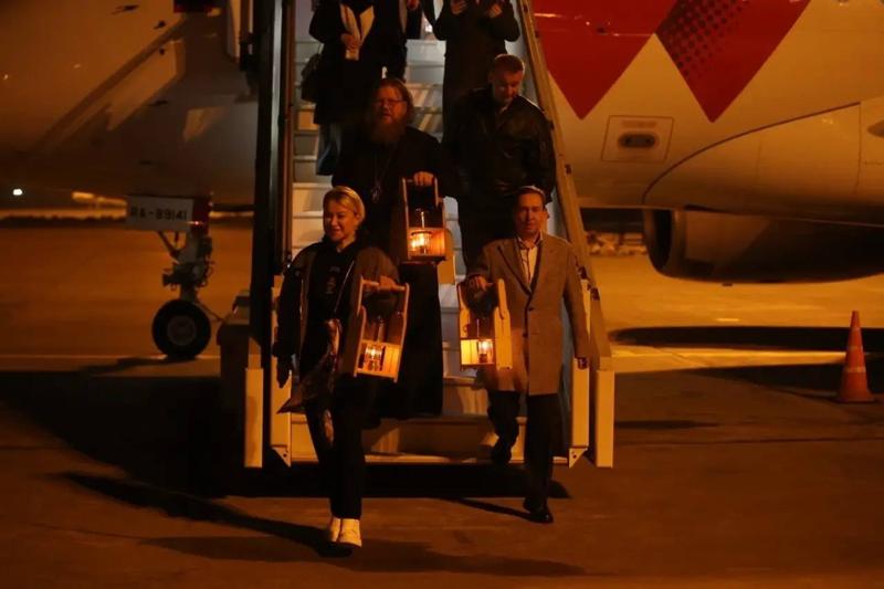 Уральские паломники сегодня доставили Благодатный огонь из храма Гроба Господня. Святыня прибыла специальным бортом, который каждый год помогают организовать Фонд святой Екатерины и группа компаний «Сима-Ленд».