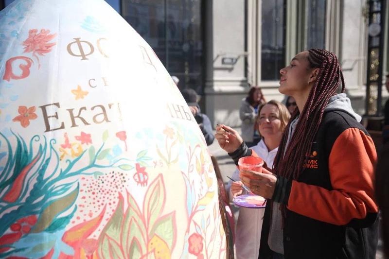 В центре Екатеринбурга на улице Вайнера сегодня утром установили трехметровое пасхальное яйцо. Жители и гости города собственноручно расписали арт-объект, в том числе в этом поучаствовали известные российские спортсмены.