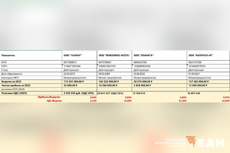 Мы спросили у Ирины Мечиславовны Мартынович (как, по нашему мнению, главного вероятного бенефициара «группы компаний Галант»), а также у ее супруга Александра Викторовича Мартыновича (как руководителя компании «Галант», работающей в 2025 году с НДС 20%), как они могут эти соотношения объяснить. Тем более, что Ирина Мартынович, хоть и открестилась ранее в письме, направленном нам, от компаний и ИП, руководителей которых ранее сама называла «Мы команда», но как раз от компании своего супруга не открещивалась. Мы полагаем, что у собственника и/или руководителя любой компании есть нормальное, правильное объяснение тому, что попало в отчетность. Ответа на момент выхода данного материала от супругов и деловых партнеров Мартынович мы не получили. Вопрос по поводу оценки этих же показателей мы также направили в ФНС по Свердловской области, об ответе сообщим, когда он поступит.