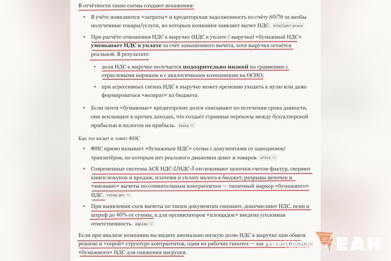 Мы обратились к нейросетям, чтобы выяснить, как налоговые органы выявляют подобные схемы. Нейросети довольно подробно описывают основной инструментарий, с помощью которого налоговые органы ищут «бумажный НДС». Вероятно, так и была вскрыта афера федерального масштаба, описанная в СМИ.