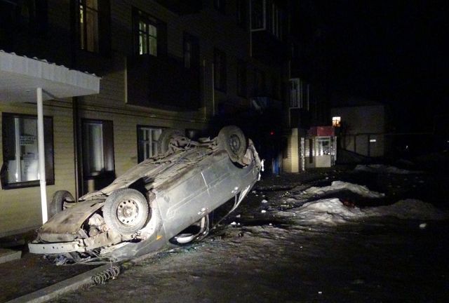 В районе дома №12 на улице Попова 25-летний мужчина, будучи подшофе, за рулем Ford Focus не справился с управлением и наехал на снежный вал. Машина опрокинулась и врезалась в жилой дом. В итоге пострадал сам водитель и его 26-летний пассажир. Европейско-Азиатские Новости.