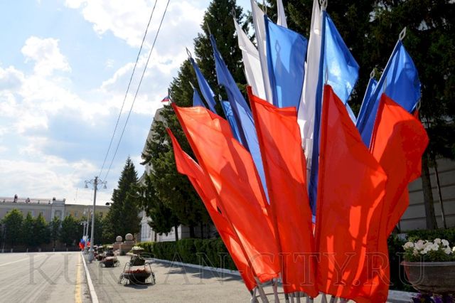 Курган преобразили ко Дню России: на улицах и в парках появились яркие флаговые «костры» и флагштоки, а на фасадах домов – праздничные баннеры. Предприятия и учреждения украсили окна своих зданий рисунками, картинками, надписями с праздничной символикой.