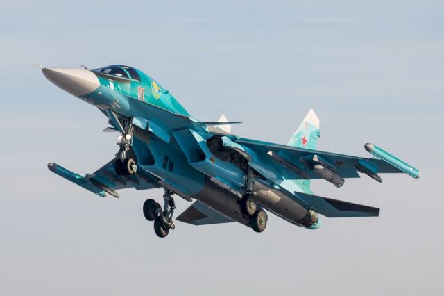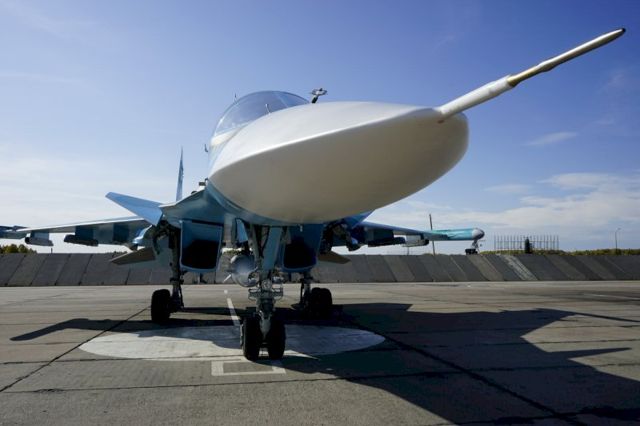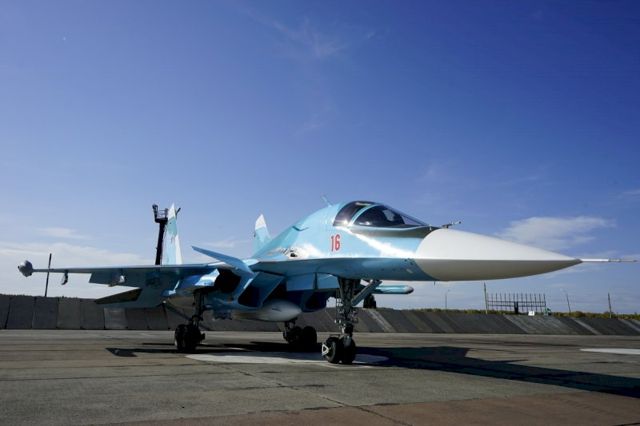 Отметим, что многофункциональный сверхзвуковой истребитель-бомбардировщик Су-34 предназначен для поражения как наземных, так и воздушных объектов противника днем и ночью при любых метеорологических условиях. Его дальность полета - до 4 тыс. км, максимальная скорость - до 1,9 тыс. км/ч, боевая нагрузка - до 8 тонн. Уровень шума от Су-34 в два раза меньше в сравнении с самолетами более ранних модификаций.