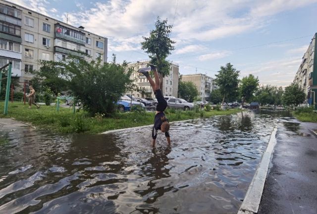 Житель города, фотограф Николай Пушилин выложил в соцсети колоритные снимки, как дети плавают в луже, бегают по ней, катаются на самокате и даже делают в ней шпагат. «Да, импортозамещение, у нас своя Венеция», - написала в комментариях пользовательница сети «ВКонтакте».