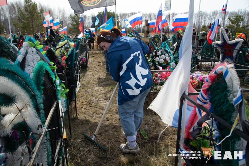 Участники субботника собрали мусор, сухую прошлогоднюю листву, поправили, где это было необходимо, места захоронения и заменили часть флагов на новые.