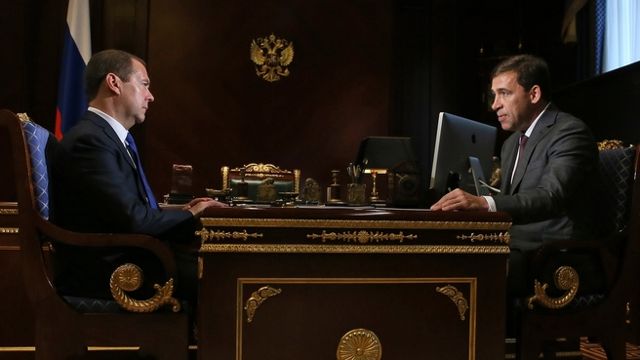 Председатель российского правительства Дмитрий Медведев встретился с врио губернатора Свердловской области Евгением Куйвашевым.