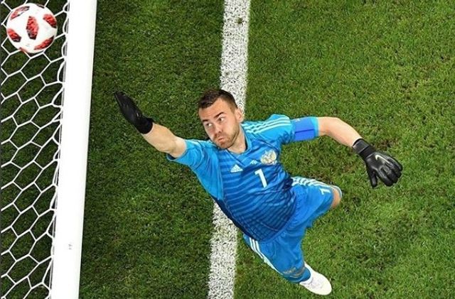 На домашнем мундиале вратарь сыграл в каждом матче, а два его сейва в серии пенальти с Испанией позволили национальной команде выйти в четвертьфинал турнира. Всего за сборную Акинфеев провел 110 матчей.