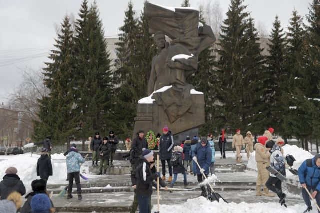 В Екатеринбурге юнармейцы освободили от снега памятник легендарному разведчику Кузнецову21 февраля 2020 в 18:26