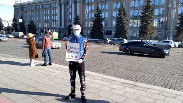 В Екатеринбурге на улице Вайнера и на площади 1905 года проходят одиночные пикеты в поддержку оппозиционера и блогера Алексея Навального, сообщает корреспондент ЕАН.