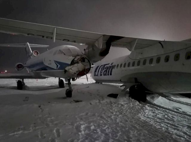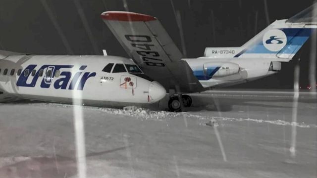 Авиаинцидент произошел в аэропорту Сургута в ХМАО. Самолет ATR-72 авиакомпании «ЮТэйр» самопроизвольно поехал и врезался в самолет Як-40.