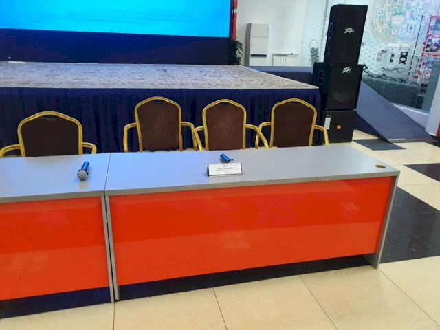 Никакой аккредитации, попасть внутрь оказывается очень просто. Перед входом вешаю бейдж "Пресса", но его даже некому проверять. Огромный зал, в котором все рассаживаются, как удобно.