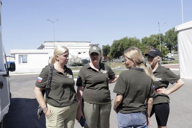 На Донбасс приехали первая вице-миссис России Екатерина Величкина, президент Ассоциации профессиональных медиаторов «Паритет» Юлия Дубинина, писатель Анжела Полежаева, главный редактор журнала EXPERT_RF Кристина Маломыжева, руководитель портала «Главная тема. Смоленск» Елена Бегунова, корреспондент РИА «Европейско-Азиатские новости» Александр Лукманов, эксперт по брендингу Ирина Берман, Дарья Стабецкая, общественный деятель с более чем миллионной аудиторией.