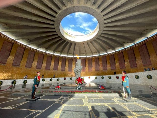 Жители Волгограда с почтением относятся к памятным местам. На Мамаевом кургане вы не встретите пьяных или свадебные гуляния, а у Вечного огня на Площади павших борцов в центре города постоянно несут службу юнармейцы. Волгоградцы, с которыми мне удалось познакомиться, рассказывают, как почетно считается стоять в карауле на Площади павших борцов и с каким рвением они сами туда вызывались.