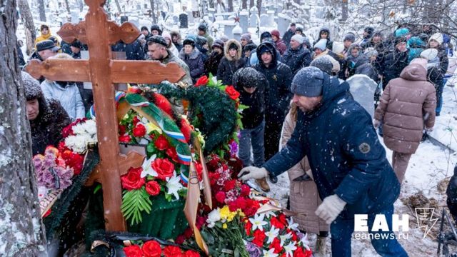 Похороны прошли спокойно, за исключением того, что, когда могилу начали закапывать, Елена, мама Евгения, встала на колени и попыталась спуститься в могилу вслед за гробом.