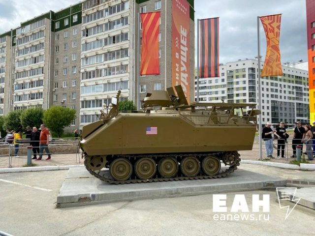 Уникальная выставка открылась в Верхней Пышме 8 июня. На вставке представлены образцы вооружения и техники, добытые бойцами группировки «Центр» Центрального военного округа в боях за Авдеевку в ДНР. Всего в экспозиции представлены 14 единиц техники, поставляемые странами НАТО на Украину. Это танки, боевые машины пехоты, бронеавтомобили, вездеходы, произведенные в США, Великобритании, Германии, Австрии, Турции и бронетранспортер «Козак», изготовленный на заводе КрАЗ в Кременчуге на Украине. Такая выставка впервые проходит за пределами Москвы.