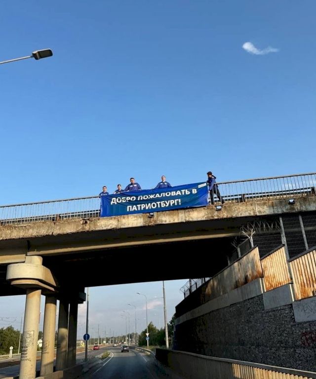 В группе «Молодая гвардия Свердловская область» в соцсети «ВКонтакте» молодогвардейцы рассказали о своей акции. На въезде в город со стороны Верхней Пышмы они растянули пятиметровый баннер с надписью «Добро пожаловать в Патриотбург!»