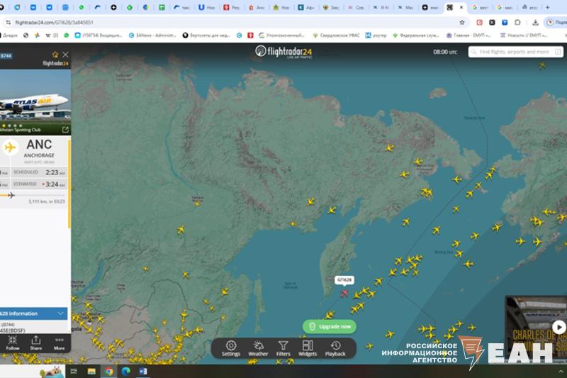 Над Чукоткой один за другим пролетели несколько Boeing, принадлежащих американским транспортным авиакомпаниям Kalitta Air, Atlas Air и Western Global Airlines. Все они летели по одному маршруту: Сеул (Южная Корея) – Анкоридж (Аляска, США).