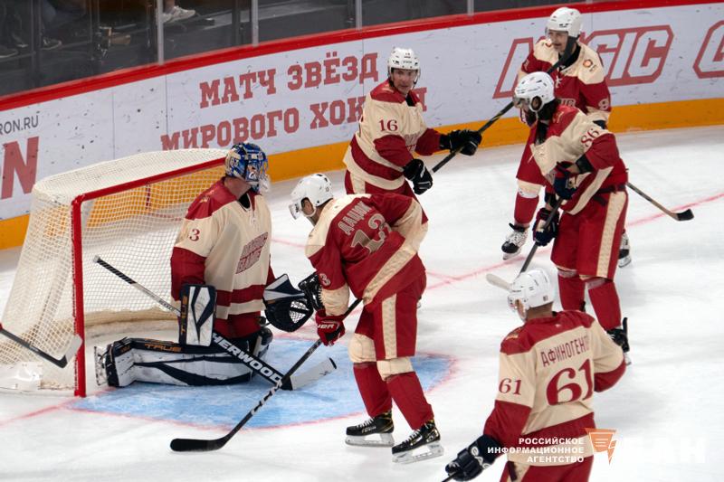 В команде «Красных» вместе с виновником торжества сыграли Александр Овечкин — лучший снайпер в истории НХЛ, Валерий Каменский, Илья Ковальчук, Вячеслав Фетисов, Сергей Федоров, Николай Хабибулин, а также звезды «Автомобилиста» — Анатолий Голышев, Никита Трямкин, Брукс Мэйсек и Стефан да Коста. Наставниками этого коллектива стали Олег Знарок, Владимир Крикунов и Александр Якушев.