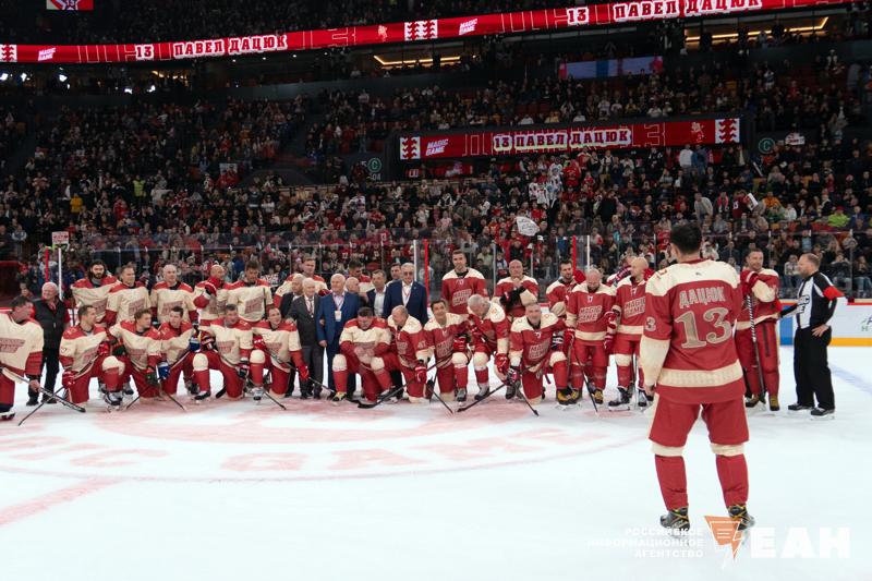 Главным событием вечера стал гала-матч, объединивший легенд, которые в разные годы были рядом с Дацюком. Мастера хоккея разделились на две команды — «Красных» и «Белых».