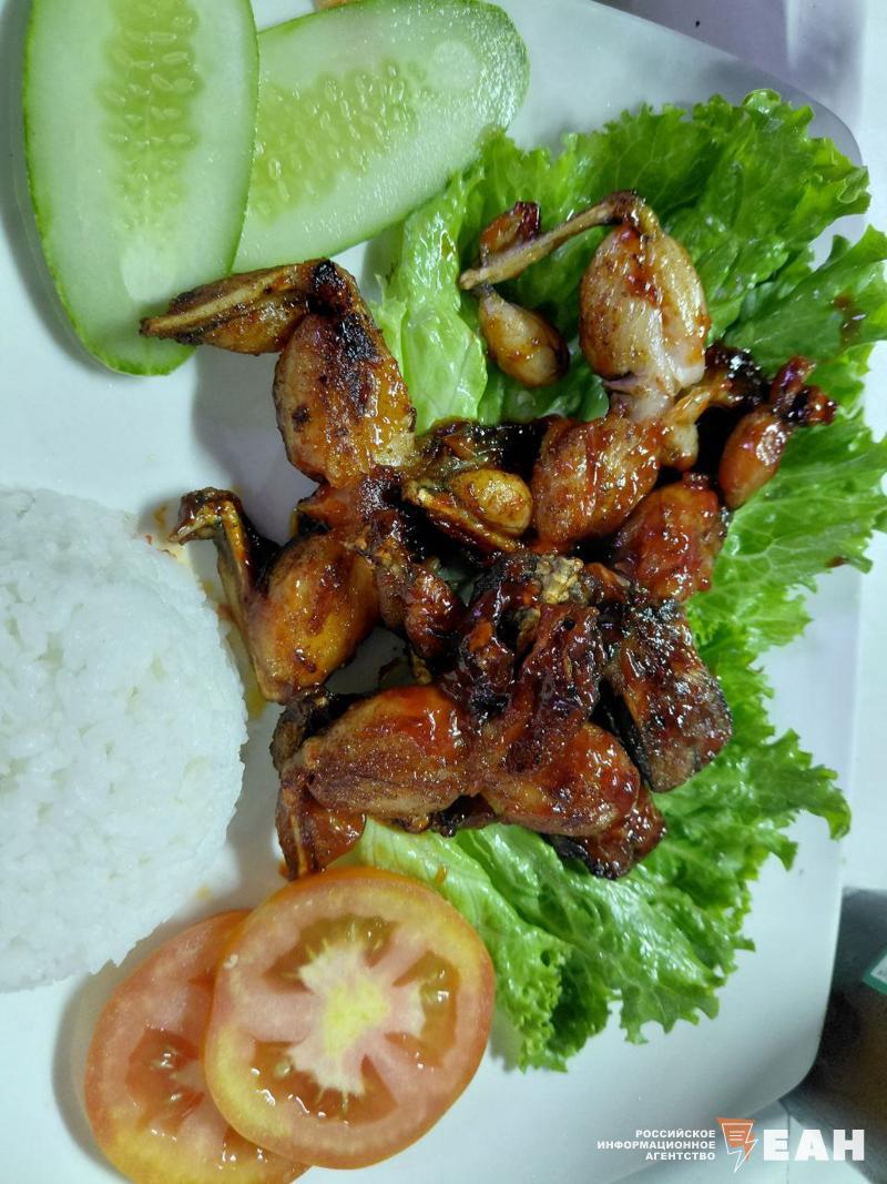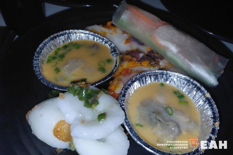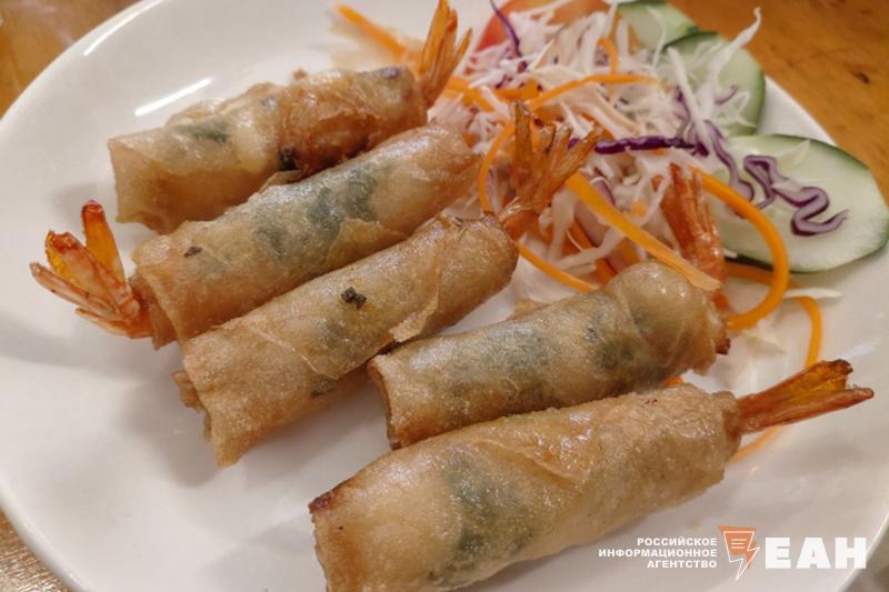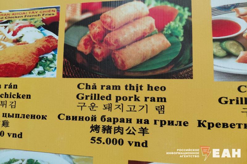 Крокодил, обжаренный с лемонграссом, - 129 тыс. Рис с куриной грудкой в ананасе – 110 тыс. донгов, рис с морепродуктами – 99 тыс., жареная лапша с говядиной – 89 тыс., спринг-роллы со свининой или с креветками – около 80 тыс.