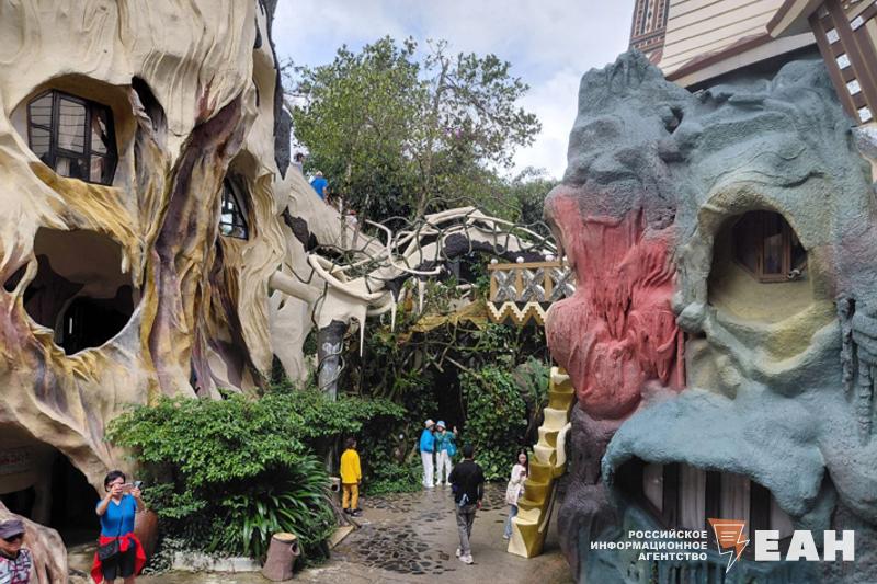 Однодневная экскурсия в город Далат, расположенный в горах на высоте 1500 м над уровнем моря, стоит порядка 50-55 долларов (оплачивать можно как в долларах, так и рублях и донгах). Программы у туроператоров разные, но в одной из вариаций вас привезут к буддистским храмам, в Crazy House (да-да, в сумасшедший дом), который построила коренная вьетнамка мадам Наташа. Также вы побываете в домиках Хоббитов, прокатитесь на электросанях и посмотрите на красивый водопад. Еще вас провезут по канатной дороге и покормят обедом, в который включены и курица, и говядина, и рыба сибас.
