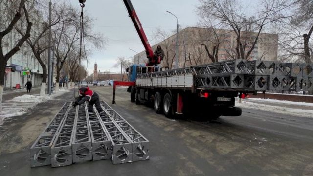 Оформлять праздничную территорию будут с улицы Советской до улиц Володарского и М. Фадеева, где появится стометровый коридор со светодиодными гирляндами с эффектом звездного неба. Сюда уже начали завозить металлические конструкции для установки коридора.