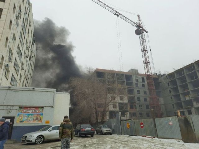 В Оренбурге произошел пожар на стройке высотных домов в центре города на пересечении улиц Корецкой и Терешковой.
