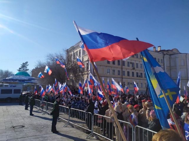В Оренбурге возле памятника В.П. Чкалову на городском бульваре 18 марта прошел митинг-концерт в поддержку спецоперации на Украине. Мероприятие также приурочено к годовщине присоединения Крыма к России.