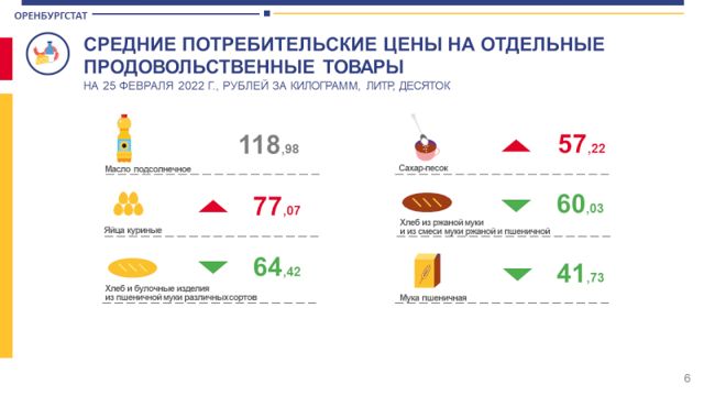 Корреспондент ЕАН в течение месяца следил за ценниками на прилавках магазина оренбургской торговой сети «Ринг». Свои данные привели и органы статистики области. Отметим, что ведомство дает информацию о ценах на ряд продуктов на 25 февраля и на 1 апреля. Предлагаем сравнить цены и проанализировать официальные данные.