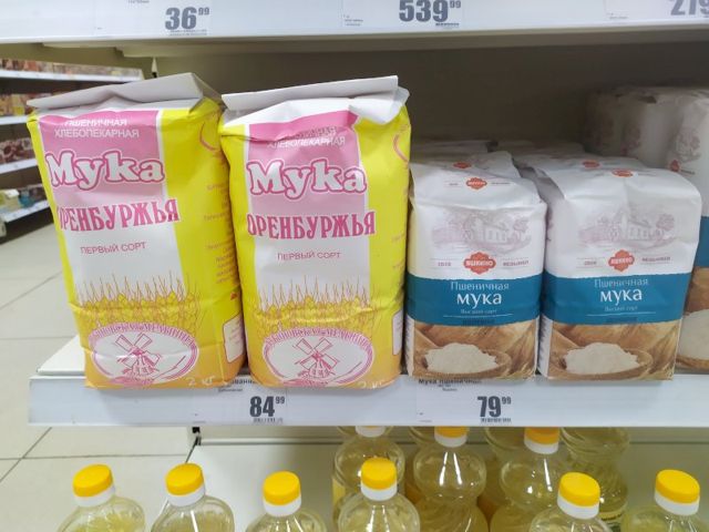 На прежнем уровне осталась цена на муку. В зависимости от производителя килограмм стоит 69 - 79 рублей. Можно найти и местную муку на развес в обычных пакетах. За нее просят около 45 рублей за кило.