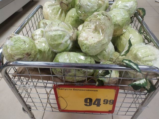 Самый серьезный рост – на капусту. По данным органов статистики, средняя цена в марте составляла чуть больше 61 рубля за кг, спустя месяц – уже больше 92 рублей. На прилавках капусту можно найти по ценам в диапазоне 95 - 120 рублей за кг.