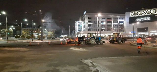 Практически круглосуточно работы шли и в переулке Матросском, там тоже в любую погоду укладывали асфальт и обустраивали бордюры. Вновь асфальт перекладывали на улице Правды, которая находится за Домом Советов, и на прилегающем участке улицы Кобозева рядом с цирком.