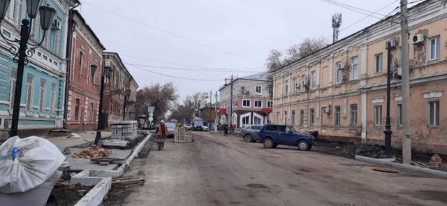 На участке улицы Пролетарской, проезд по которой еще закрыт, тоже ведутся круглосуточные работы. На углу улиц Пролетарской и Володарского идет ремонт Главного управления дорожного хозяйства Оренбургской области, которое является объектом культурного наследия - «Дом купчихи Е.В. Мазовой». Аукцион на капремонт и победители были объявлены в августе, а в ноябре историческое здание осталось без крыши. Там сейчас ведется работа.