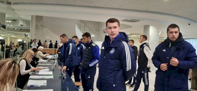 Футбольный клуб «Оренбург» проголосовал на выборах президента на избирательном участке в ДК «Газовик». Сюда спортсмены пришли немного уставшие после вчерашнего матча в Москве со «Спартаком».