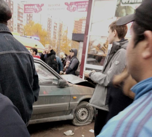 Водитель ВАЗ-21102 нарушил ПДД во время разворота и врезался во встречный ВАЗ-21130. Последний отбросило на остановочный комплекс.