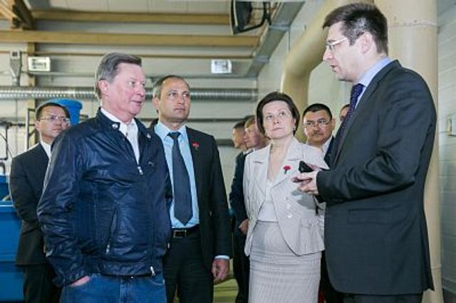 Губернатор Югры Наталья Комарова провела экскурсию специальному представителю президента РФ по вопросам природоохранной деятельности, экологии и транспорта Сергею Иванову по Югорскому рыбзаводу.