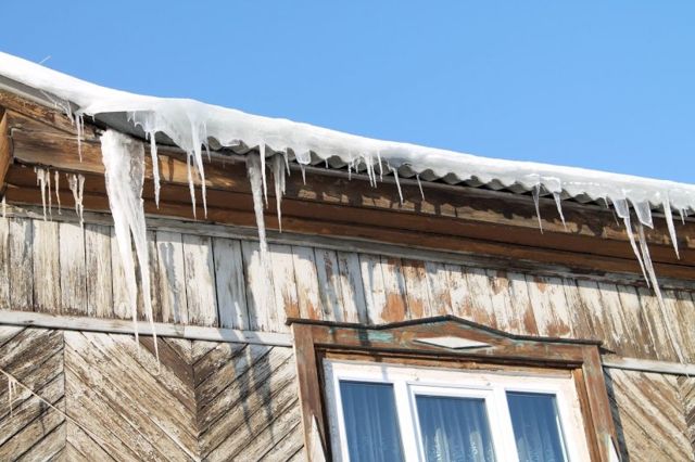 Весной лед на окне начал таять, в квартиру стала проникать вода. Волонтеры убрали снег.