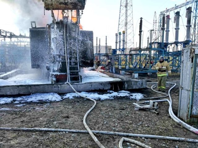 К месту вызова были направлены подразделения. Первые отделения, обеспечивающие охрану объекта в километре от места происшествия, прибыли через две минуты. Горела подстанция и разлившееся трансформаторное масло.