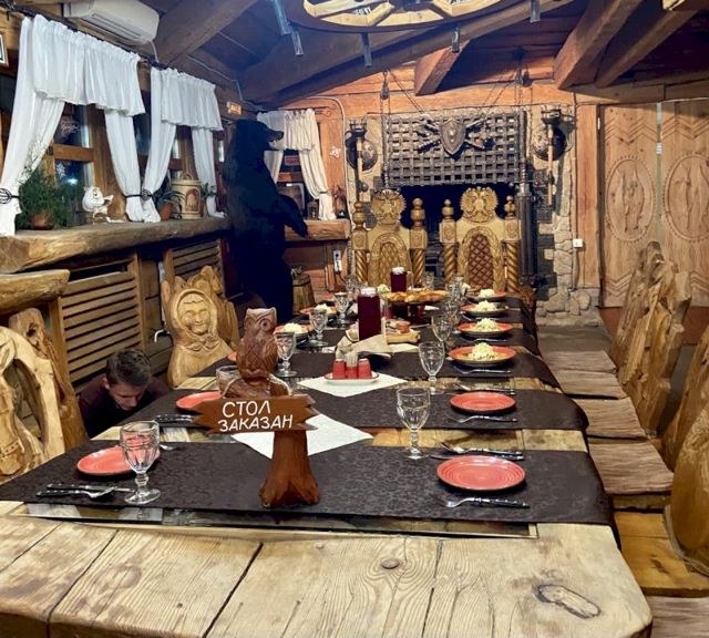 Остановиться на ночлег можно в туристическом комплексе "Абалак", построенном в древнерусском стиле. Номера, расположенные в теремах из сосновых бревен, теплые и уютные. Примечательно, что каждый имеет отдельный вход с улицы. Территорию украшают деревянные скульптуры, есть горка — пока еще не залитая, на которой зимой будут кататься дети. Также юные гости смогут посетить избушку бабы Яги, которая летом крутится вокруг своей оси, а зимой к их услугам лыжи и бублики. В ноябрьское воскресенье участники нашего инфотура были единственными посетителями комплекса, оставшимися на ночлег. Мы смогли поужинать в аутентичном трактире «Белая сова» и сходить в баню.