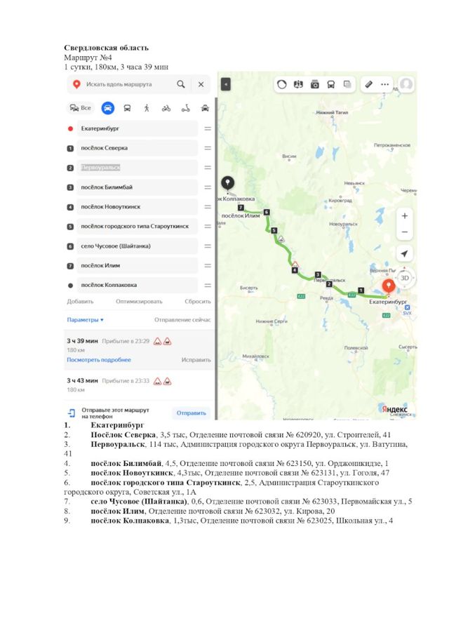 Четвертый маршрут – 180 км. Агитаторы начнут работу в Екатеринбурге, затем переместятся в Северку, Первоуральск, Билимбай, Новоуткинск, пгт Староуткинск, Чусовое, Илим, Колпаковка.