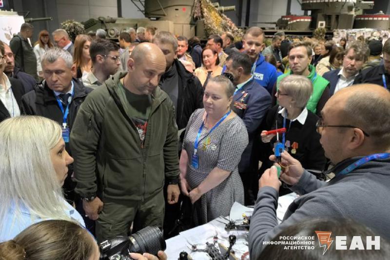 Форум прошел в одном из зданий Музея военной техники. Началось мероприятие с того, что полпред обошел столы с изделиями «народного ВПК»: различные системы дронов, РЭБов, тягачи, элементы амуниции и прочее. На обход ушло более полутора часов. Жога, имеющий десятилетний опыт боев в Донбассе, внимательно рассматривал изделия, а потом дотошно расспрашивал о них.