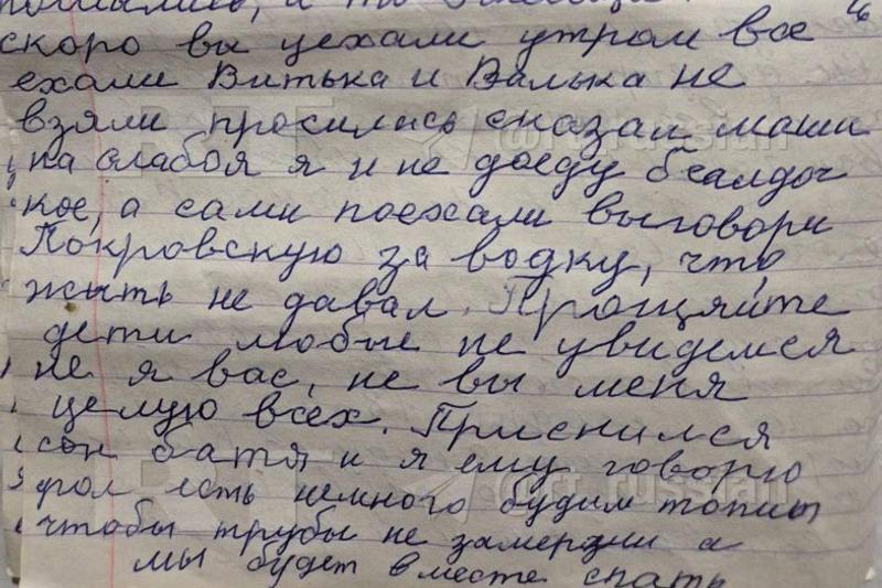 «В хате три градуса тепла, скоро конец. Вам желаю, чтобы были живы и здоровы. Я прожила много лет, хоть не хорошо. Окна все выбиты, шифер с сарая падает, и с хаты течь будет».