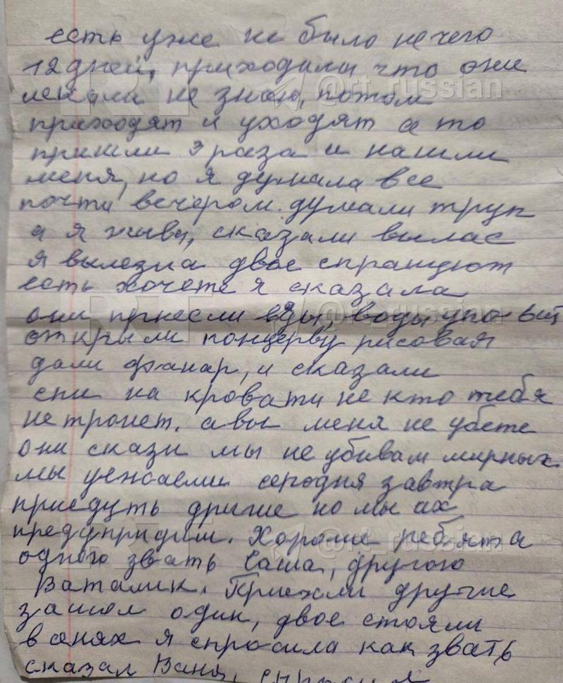 «Напишу, как я жила, спала в сарае под столом… Каждый день прошу смерти. С сарая перешла в хату, буду лежать на кровати, часов нет. Потом лежала под кроватью».