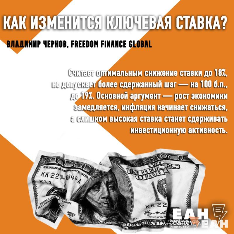 Опрошенные ими аналитики поддерживают мнение о снижении на 150–200 б.п. Но есть и риски: инфляционные ожидания в экономике остаются высокими, а валютный рынок по-прежнему чувствителен к оттоку капитала. Поэтому, скорее всего, будет реализован осторожный сценарий — с уменьшением на 100–150 пунктов.